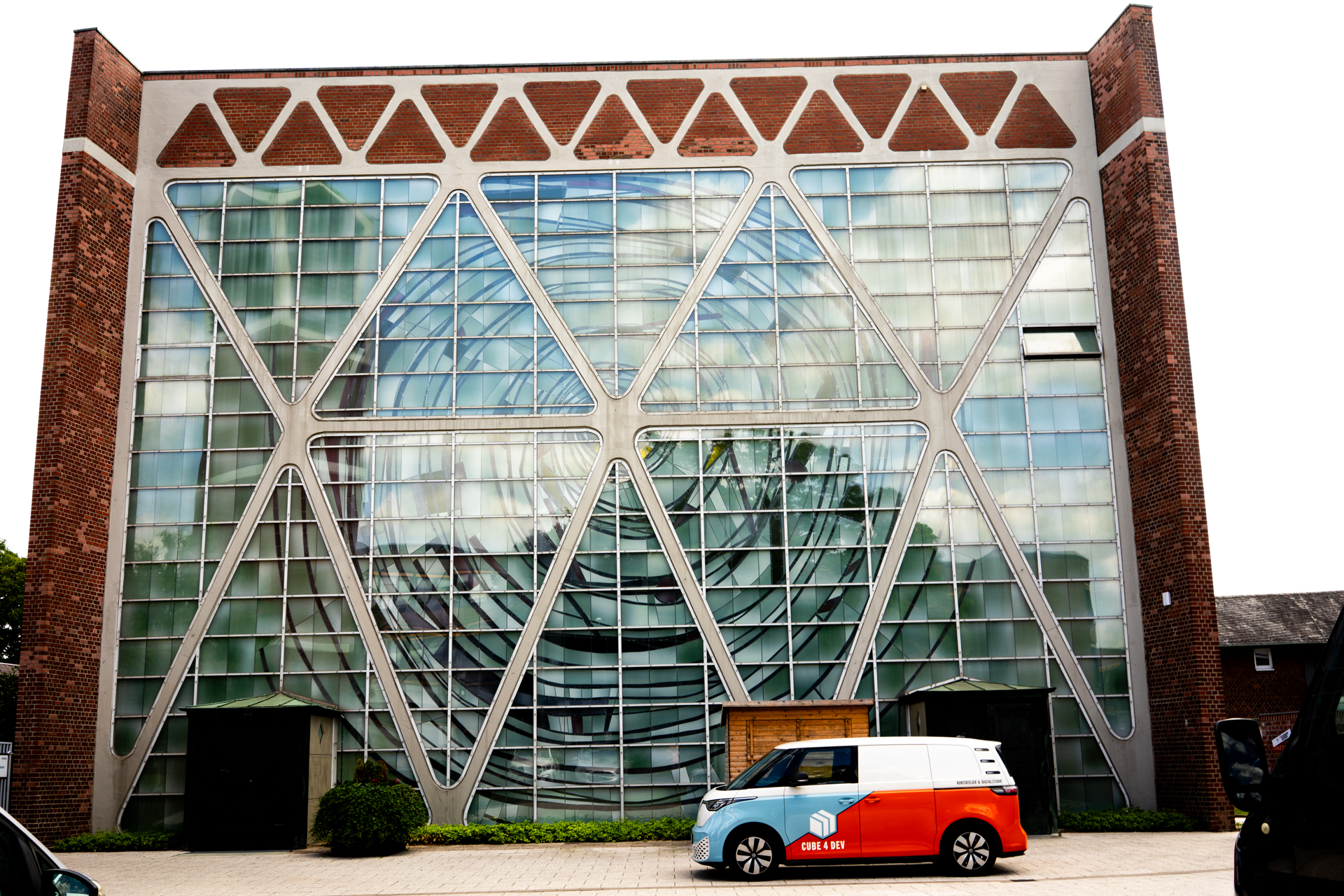 'Bruchkante Konkret' ist der Titel der Arbeit und beschäftigt sich mit dem Randbereich der konkreten Kunst. Ist die Kunst noch bestimmt Konkret oder bekommt sie schon einen bestimmten Kontext und verliert seinen künstlerisch konkreten Charakter. Das Bewußtsein des Betrachters definiert die Sichtweise auf die reine künstlerische Wahrnehmung oder nimmt die grafische abstrakte Aufarbeitung des Themas Strom im Umspannwerk auf und verbindet sich mit der Umgebung.