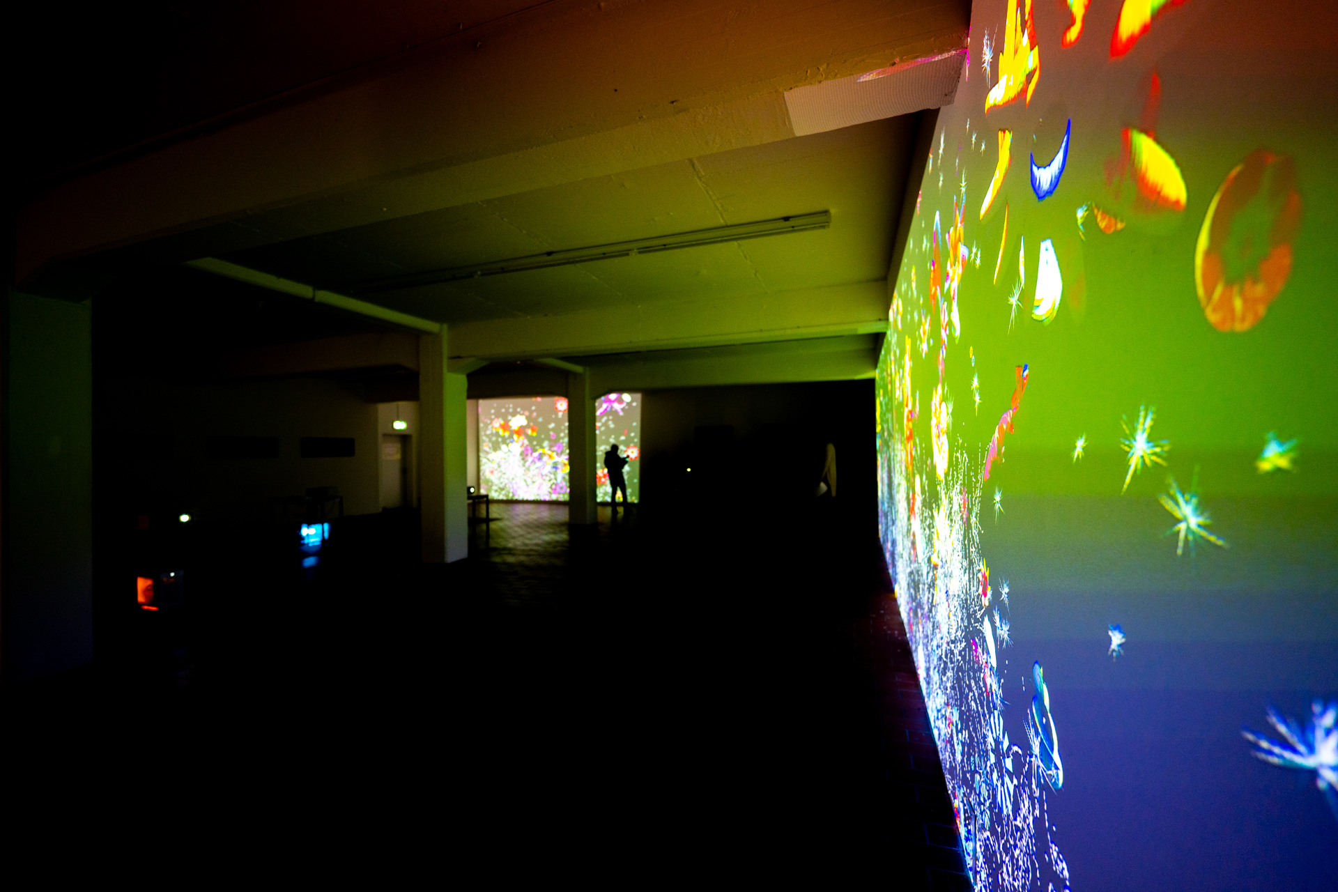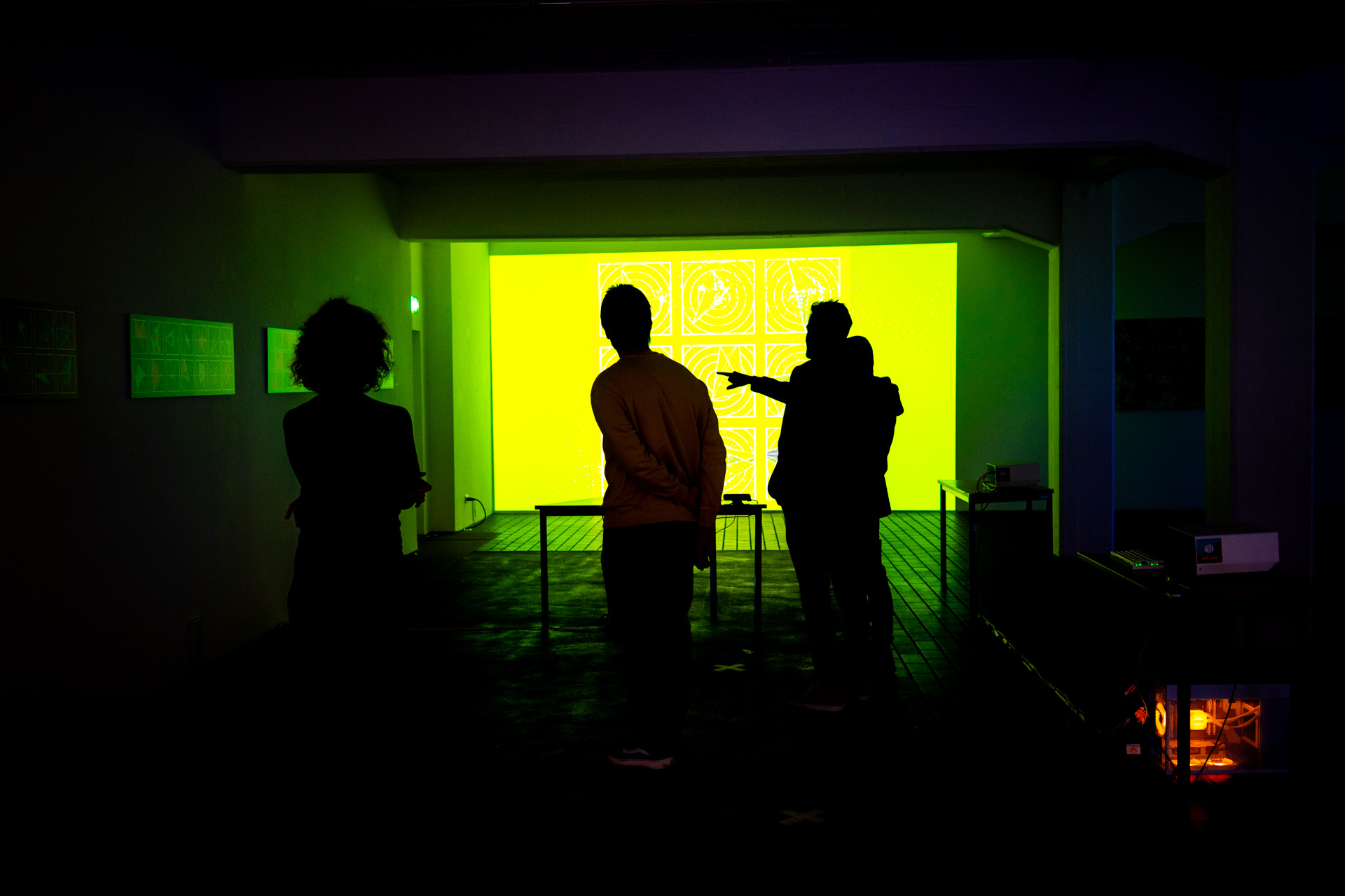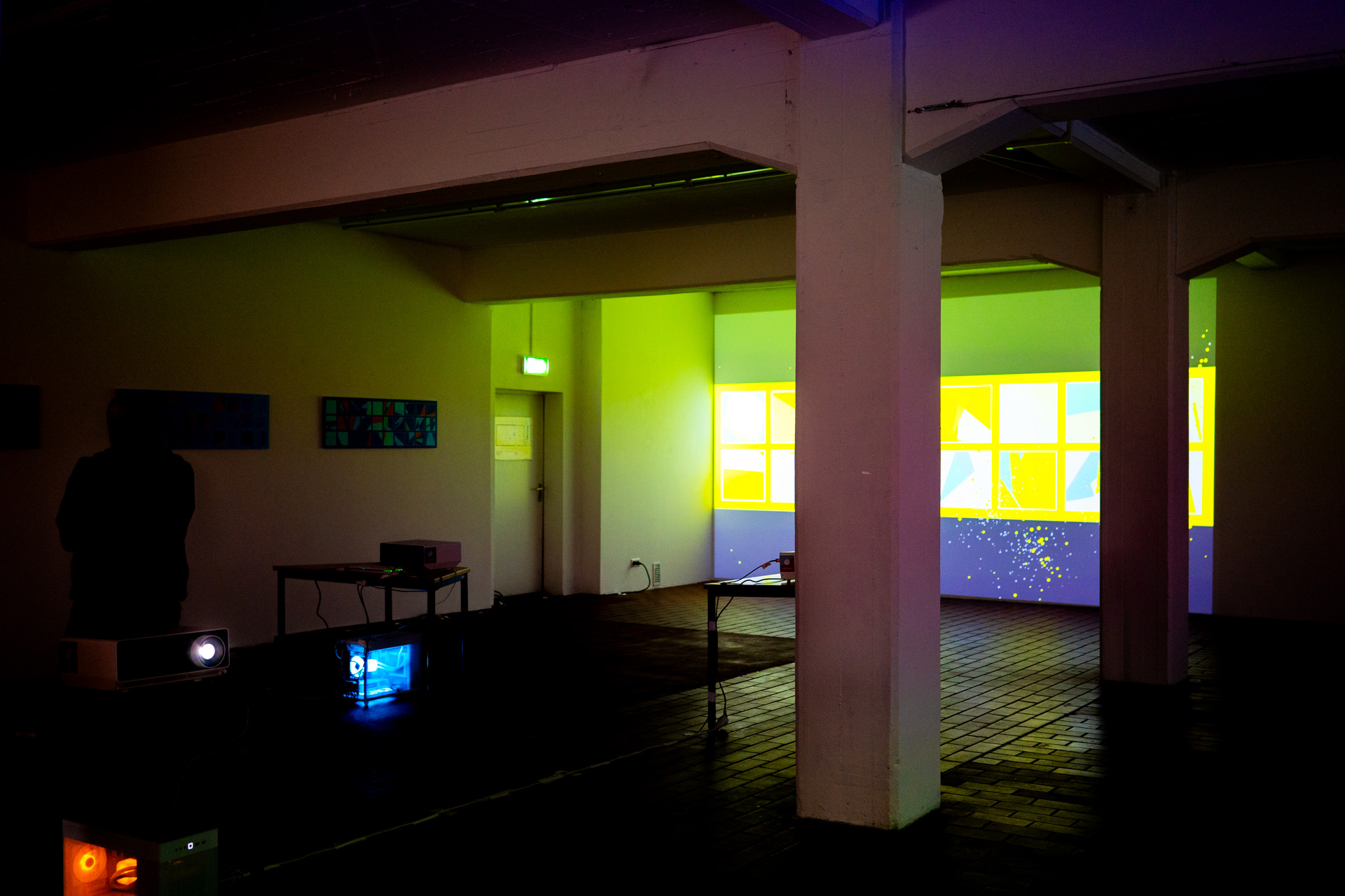Die Werkschau der neuen immersiven Arbeiten Borderless und Fragmentum war ein super Erfolg. Tolle Besucher die ausgiebig und mit Spaß die Werke getestet haben. Als die Besucher eintrafen war es auch endlich dunkel genug um die Leuchtkraft der Installation richtig zur Geltung kommen zu lassen. Auch Danke an alle Helfer, an F. und M. , an meine Familie und besonders an meinen Bruder der seine Gaststätte super vorbereitet hatte.