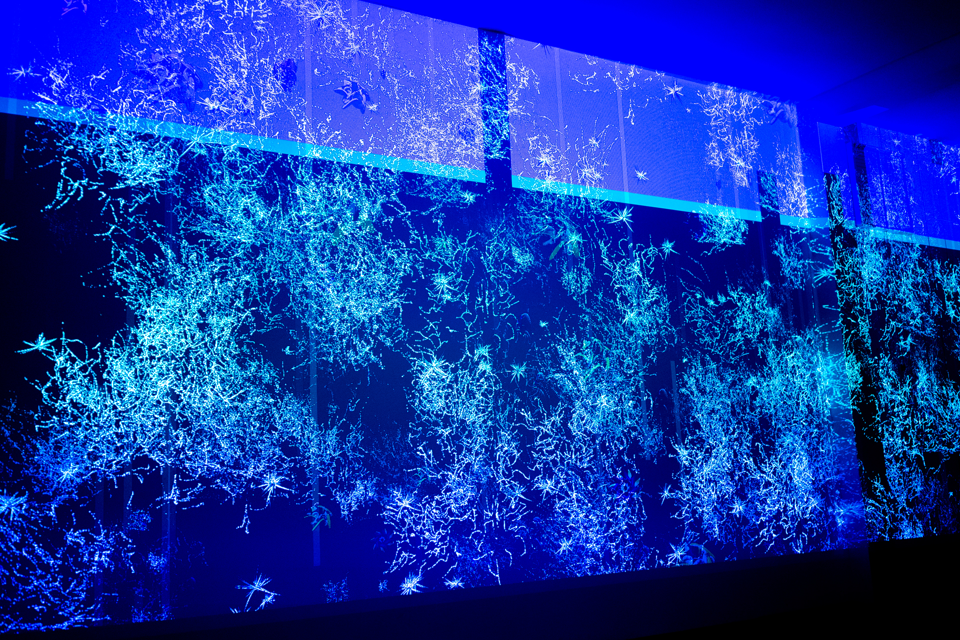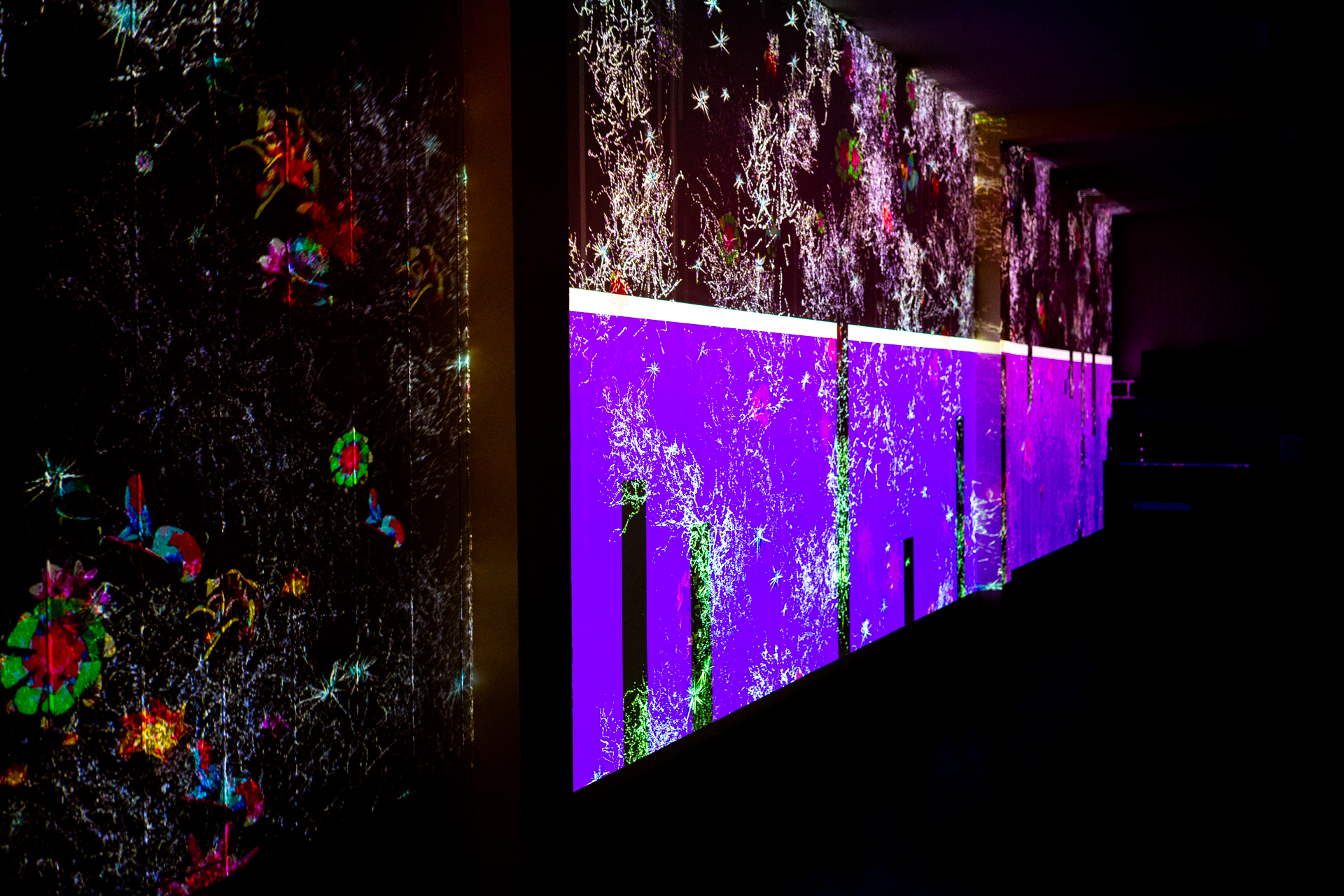 Die Werkschau der neuen immersiven Arbeiten Borderless und Fragmentum war ein super Erfolg. Tolle Besucher die ausgiebig und mit Spaß die Werke getestet haben. Als die Besucher eintrafen war es auch endlich dunkel genug um die Leuchtkraft der Installation richtig zur Geltung kommen zu lassen. Auch Danke an alle Helfer, an F. und M. , an meine Familie und besonders an meinen Bruder der seine Gaststätte super vorbereitet hatte.