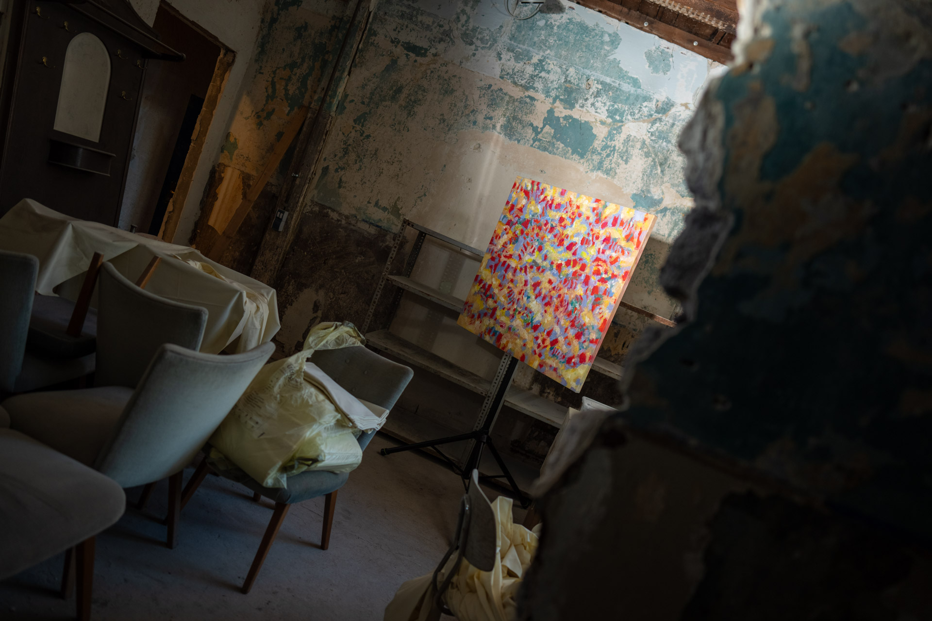 Serie Verlust 2023 von Tobias Post on Tour 2024 in der Halle205 freiRaum für kunst & kultur,  ein denkmalgeschütztes Jugendstilgebäude, dem ehemaligen Pferdestall der Brauerei Müser in Bochum Langendreer. Ausstellung in den oberen Räumen mit sehr viel industriellem Charme.  Herzlichen Dank an das tolle Team von Halle205.