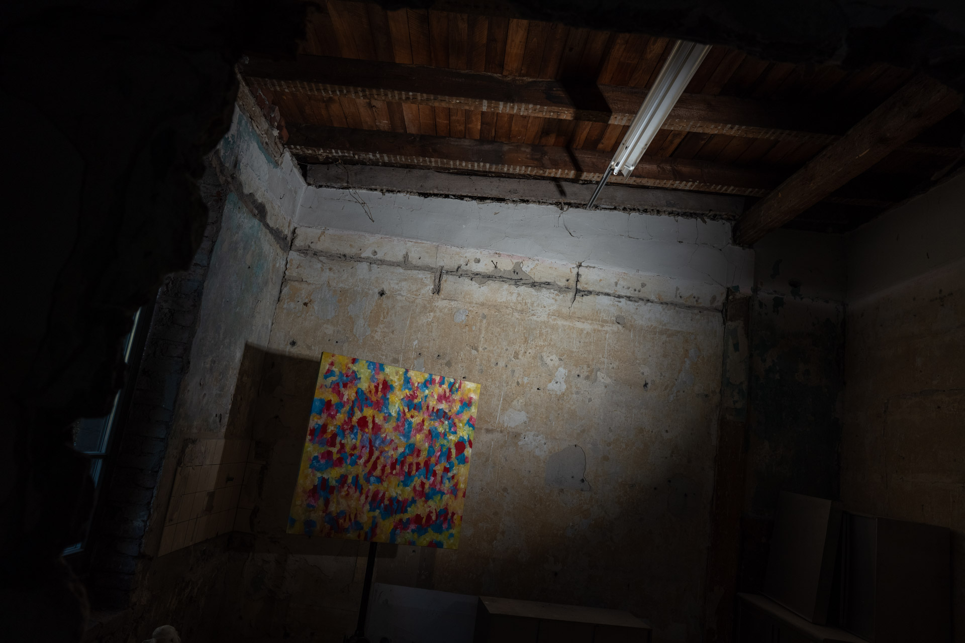 Serie Verlust 2023 von Tobias Post on Tour 2024 in der Halle205 freiRaum für kunst & kultur,  ein denkmalgeschütztes Jugendstilgebäude, dem ehemaligen Pferdestall der Brauerei Müser in Bochum Langendreer. Ausstellung in dem unteren großen Raum, dem ehemaligen eigentlichen Pferdestall.  Herzlichen Dank an das tolle Team von Halle205.