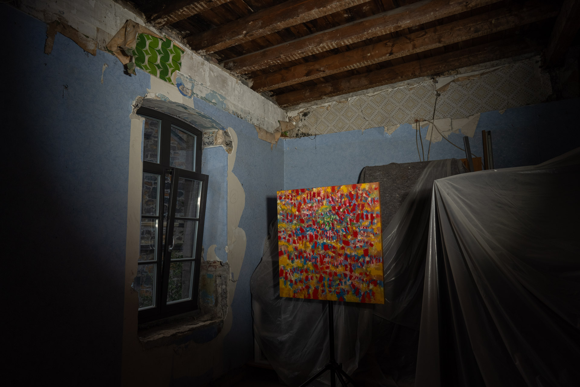 Serie Verlust 2023 von Tobias Post on Tour 2024 in der Halle205 freiRaum für kunst & kultur,  ein denkmalgeschütztes Jugendstilgebäude, dem ehemaligen Pferdestall der Brauerei Müser in Bochum Langendreer. Ausstellung in den oberen Räumen mit sehr viel industriellem Charme.  Herzlichen Dank an das tolle Team von Halle205.