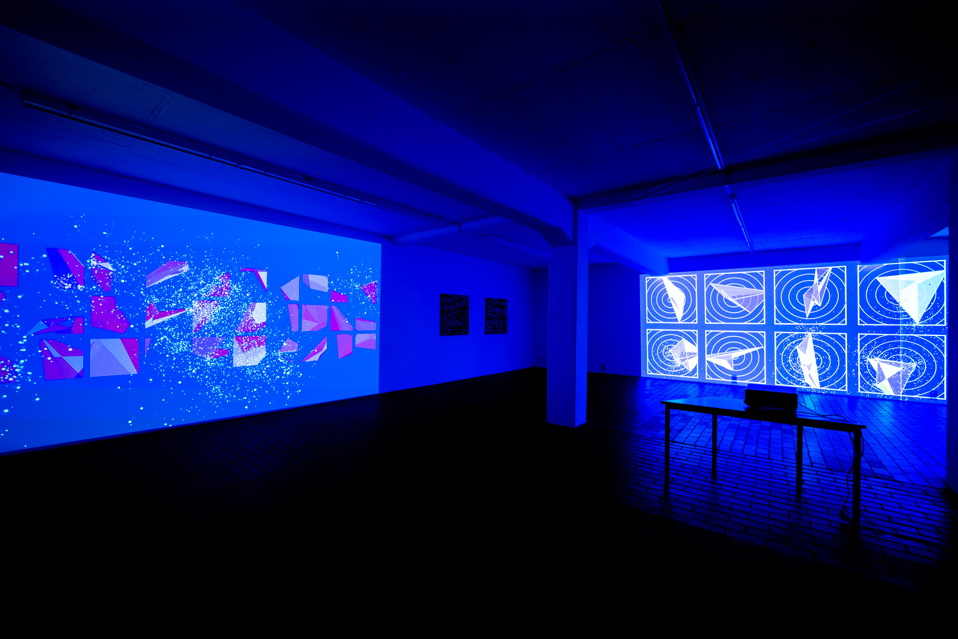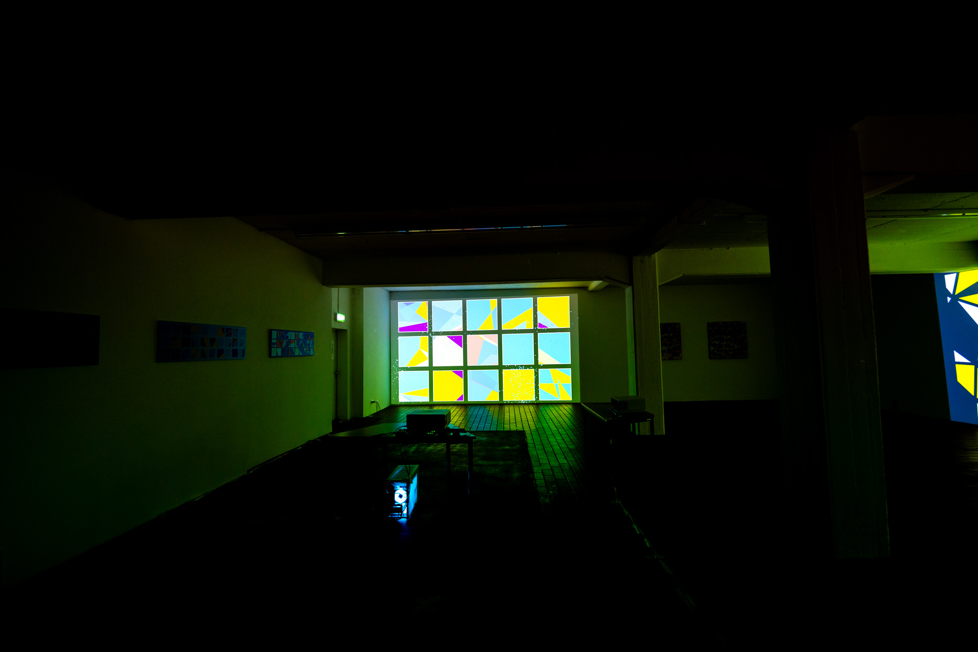 Die Werkschau der neuen immersiven Arbeiten Borderless und Fragmentum war ein super Erfolg. Tolle Besucher die ausgiebig und mit Spaß die Werke getestet haben. Als die Besucher eintrafen war es auch endlich dunkel genug um die Leuchtkraft der Installation richtig zur Geltung kommen zu lassen. Auch Danke an alle Helfer, an F. und M. , an meine Familie und besonders an meinen Bruder der seine Gaststätte super vorbereitet hatte.